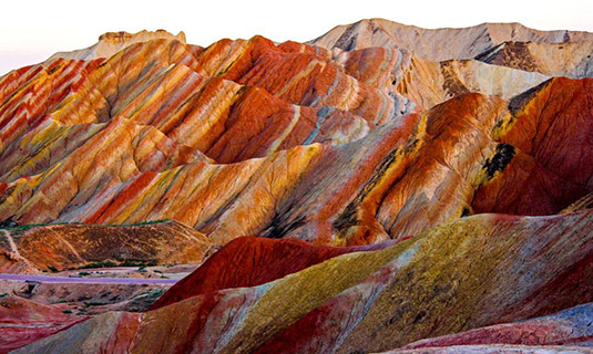 Known as “the eye candy of Zhangye” the Zhangye Danxia Landform Geological Park is one of the most amazing natural sights in the world. Filled with red rocks and rainbow-colored ridges, the landscape has many sheer red cliffs, several of which reach hundreds of meters into the sky. Lying alongside multi-colored ridges of weather-beaten strata rocks, the landscape stretches as far as the eye can see, standing out against the green and gray colors of the plains surrounding it.