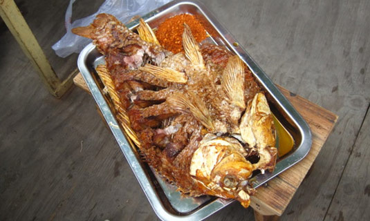 Roast Fish: The fish is from the Lugu Lake. The Mosuo people slit the fish's belly, dig out its viscera and wash up, put salt and spice, and stir, and then put it on fire or in the pat for roasting. It tastes crispy and fragrant.