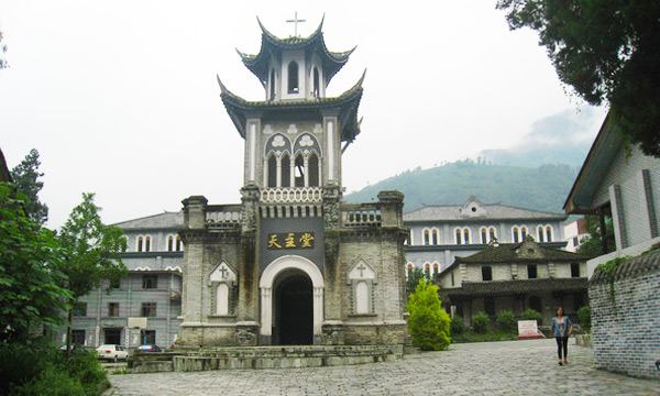 Aside from the ancient Ming and Qing Dynasty buildings, some parts of the town although not modern, date back to less ancient times than their counterparts do. Deep among the older streets of the town lies a small part of western culture, in the form of an old, gothic Catholic Church, which was built by French missionaries in 1918. However, while the church may be a western notion of religion, the style and architecture is very oriental, blending the French romanticism with the traditional temple style of southwest China.