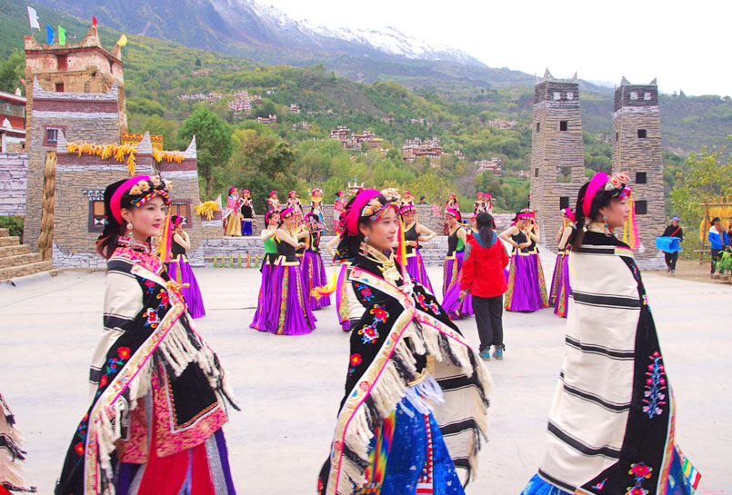 Danba Beauties are Performing with unique Jiarong Tibetan Costume